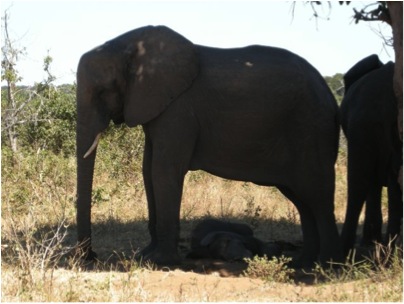 Check out the baby under her mama – in the shade on the ground!