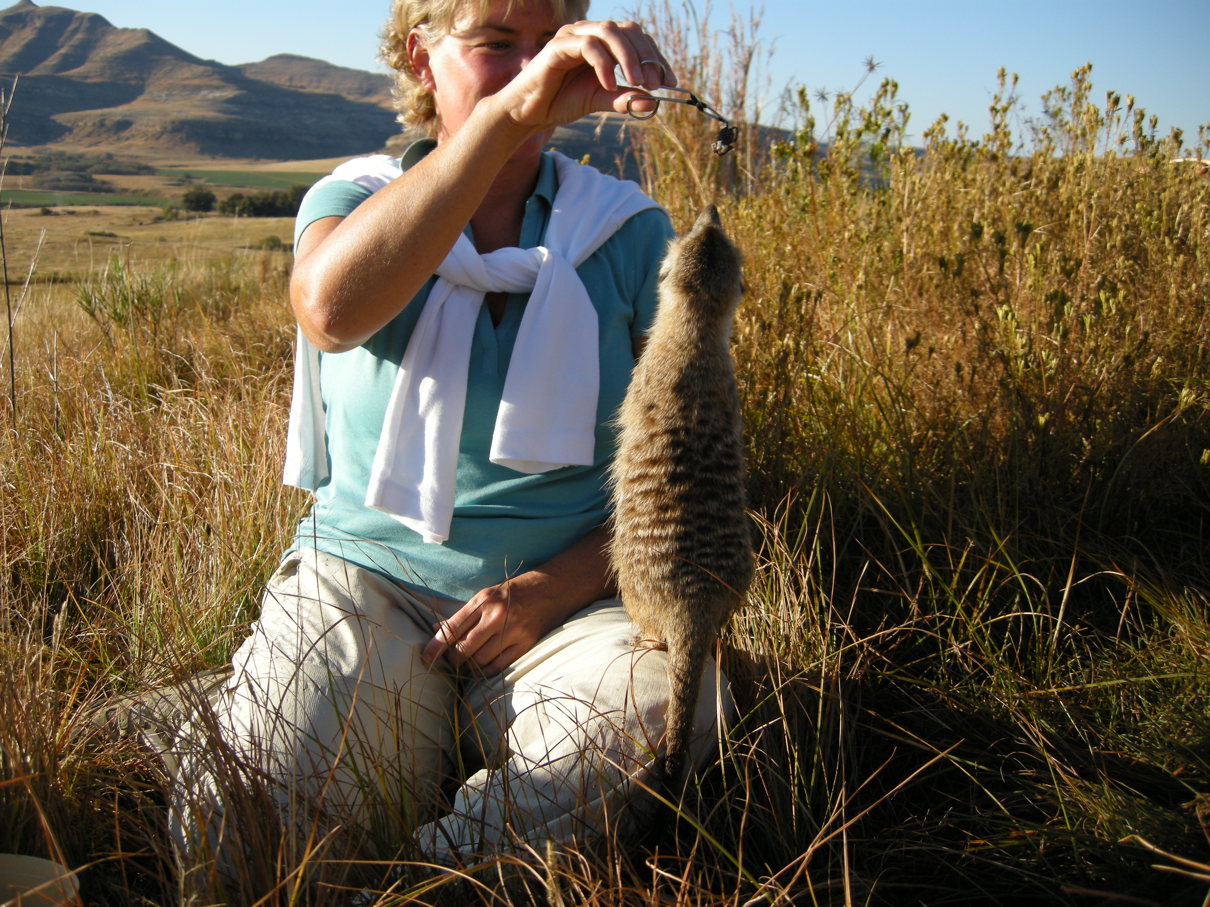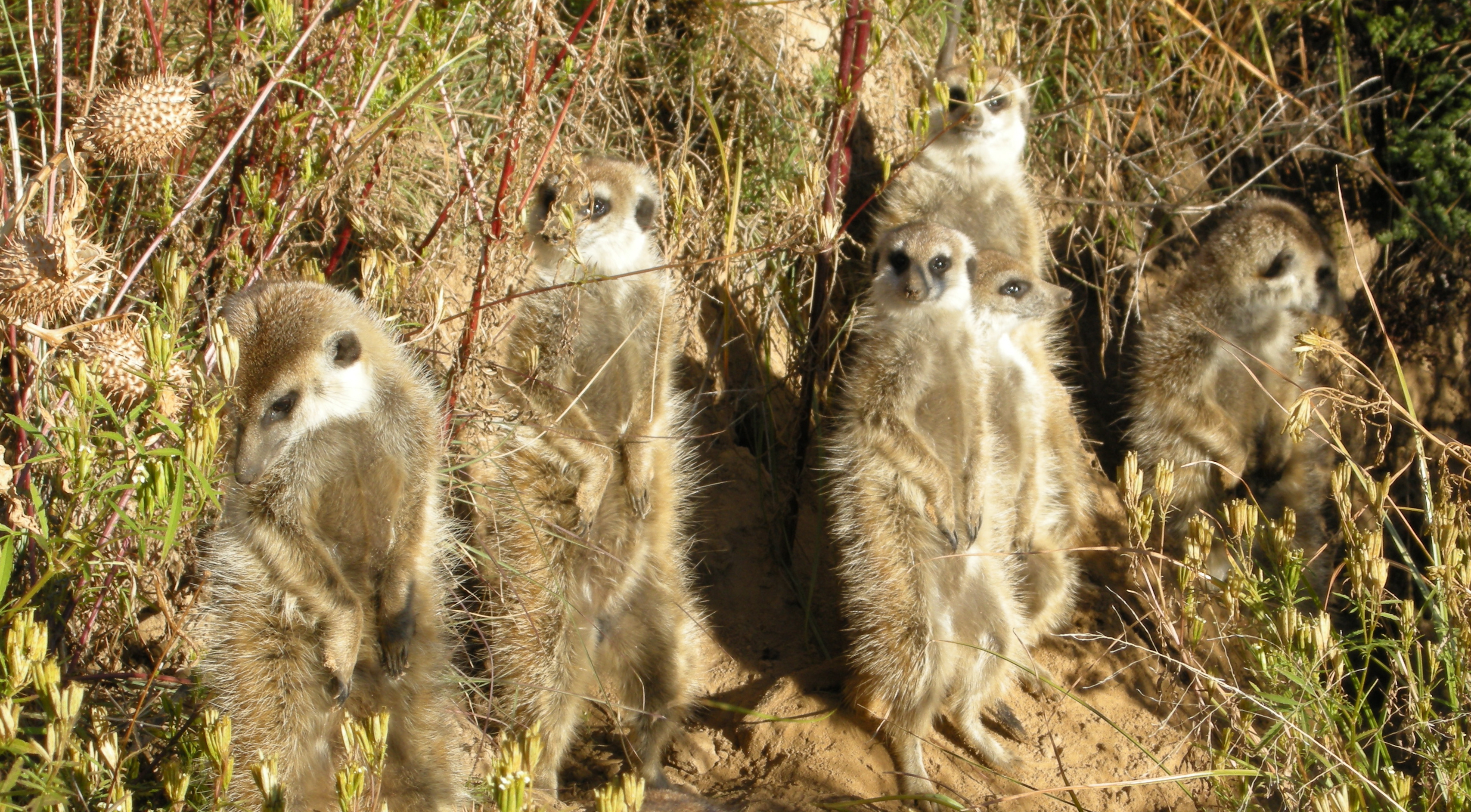 The time spent with the meerkats was fun though — they are a riot to watch. They’ll come up from their burrow in the morning to get their core tempurature warmed up in the rising sun of the morning. Then they’re off to forage for food — this is usually when we lose them and head for home. They move pretty quickly and in the high grass it’s really hard to find the little guys once they get moving. In the afternoon we go out to find them and identify which burrow they will be spending the night in so that we know where to go in the morning.