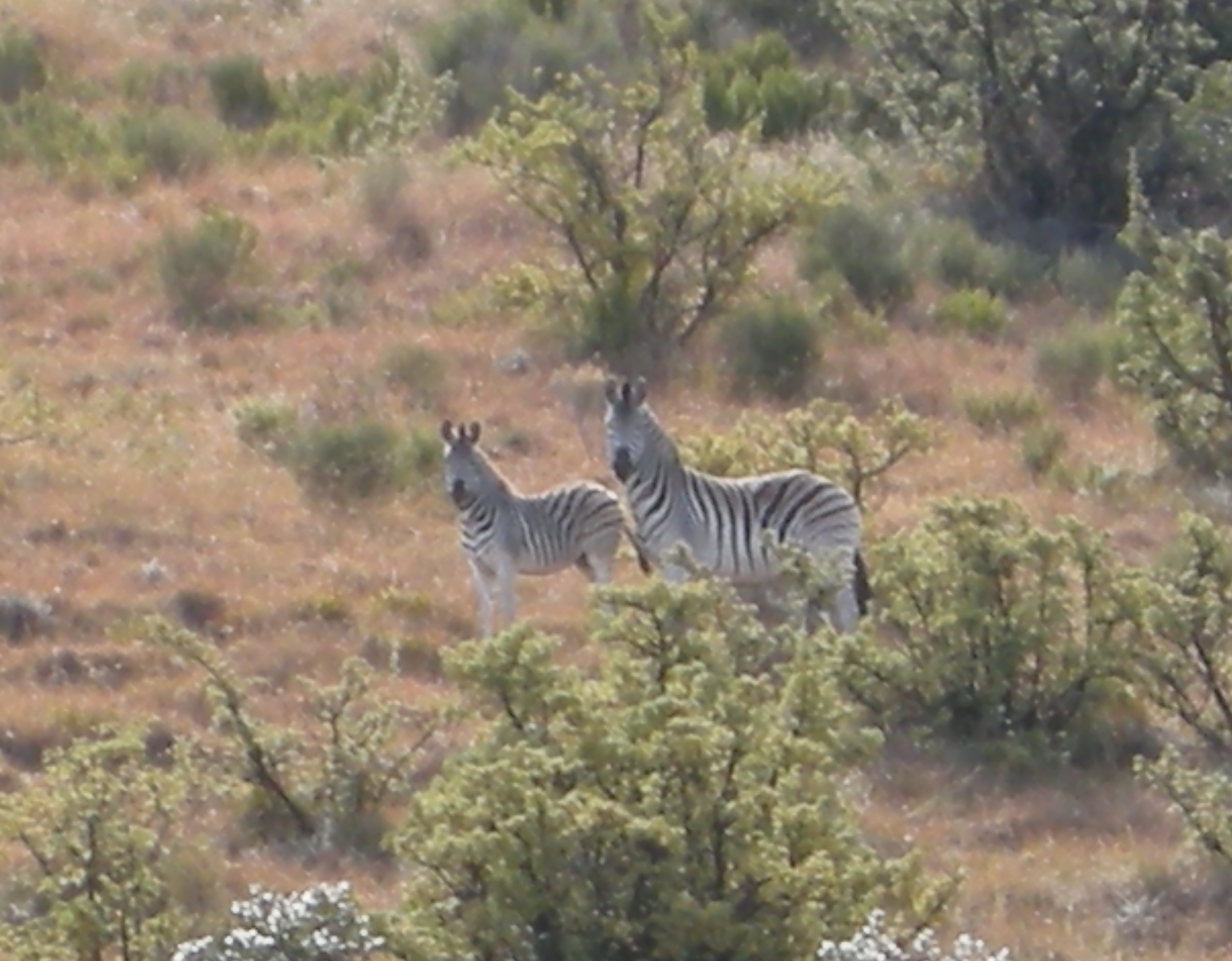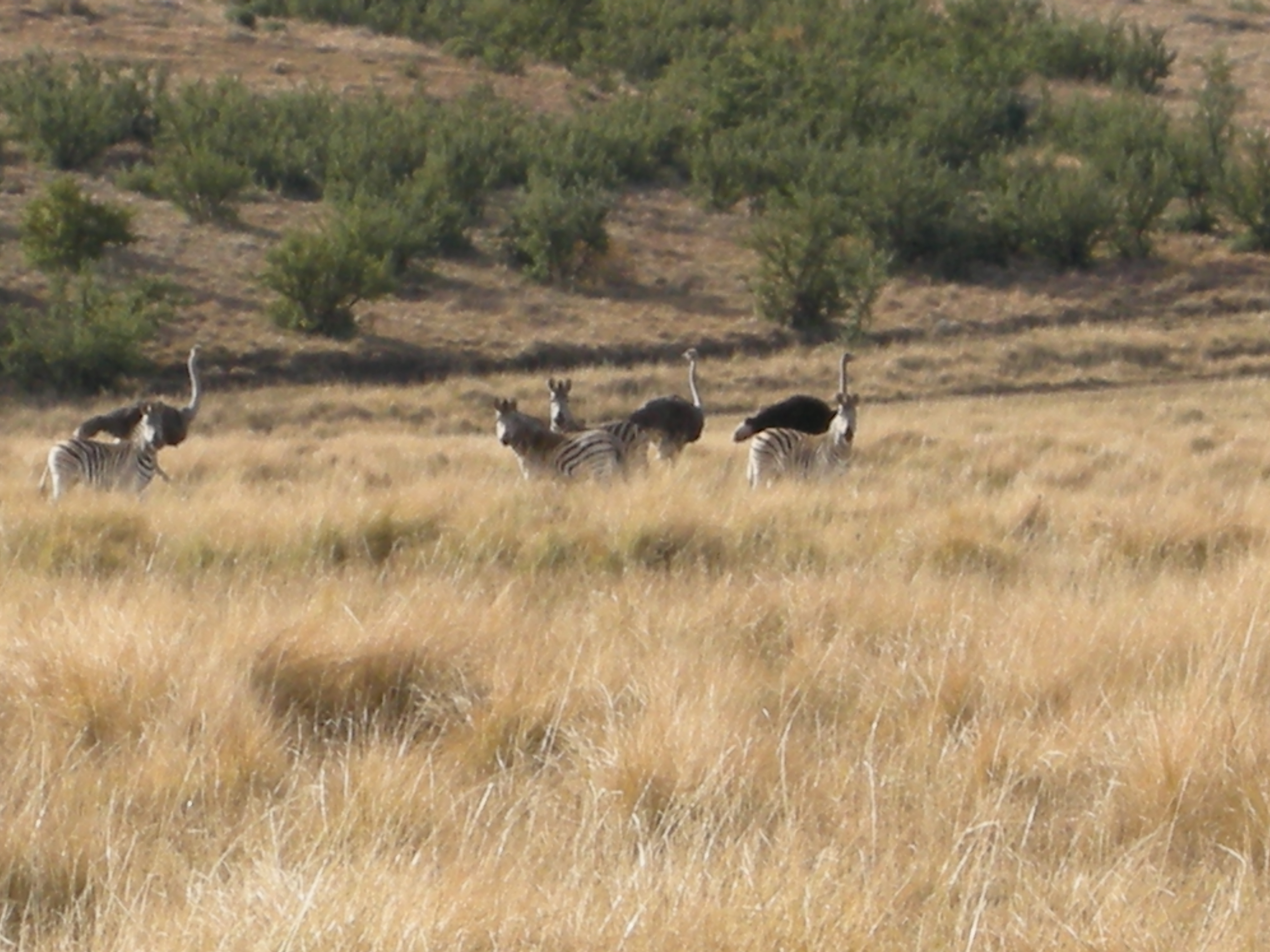 I had a great horse (whose Dutch name escapes me) who wheezed almost as much as I do when I’m hiking. After a nice canter down the lane…it sounded like the the death rattle was coming from him. We stayed at the back of the pack – which suited him and all the other horses because the little stinker is a kicker. Stephanie has ridden before and did a great job! Rachel on the other hand, had only been on a horse once – a long time ago – so she was a little nervous. She did a super job though – trotting and cantering with the rest of us. We went down into the valley and ran into herds of ostrich, buffalo, zebra, various waterbuck and other misc. african deer.