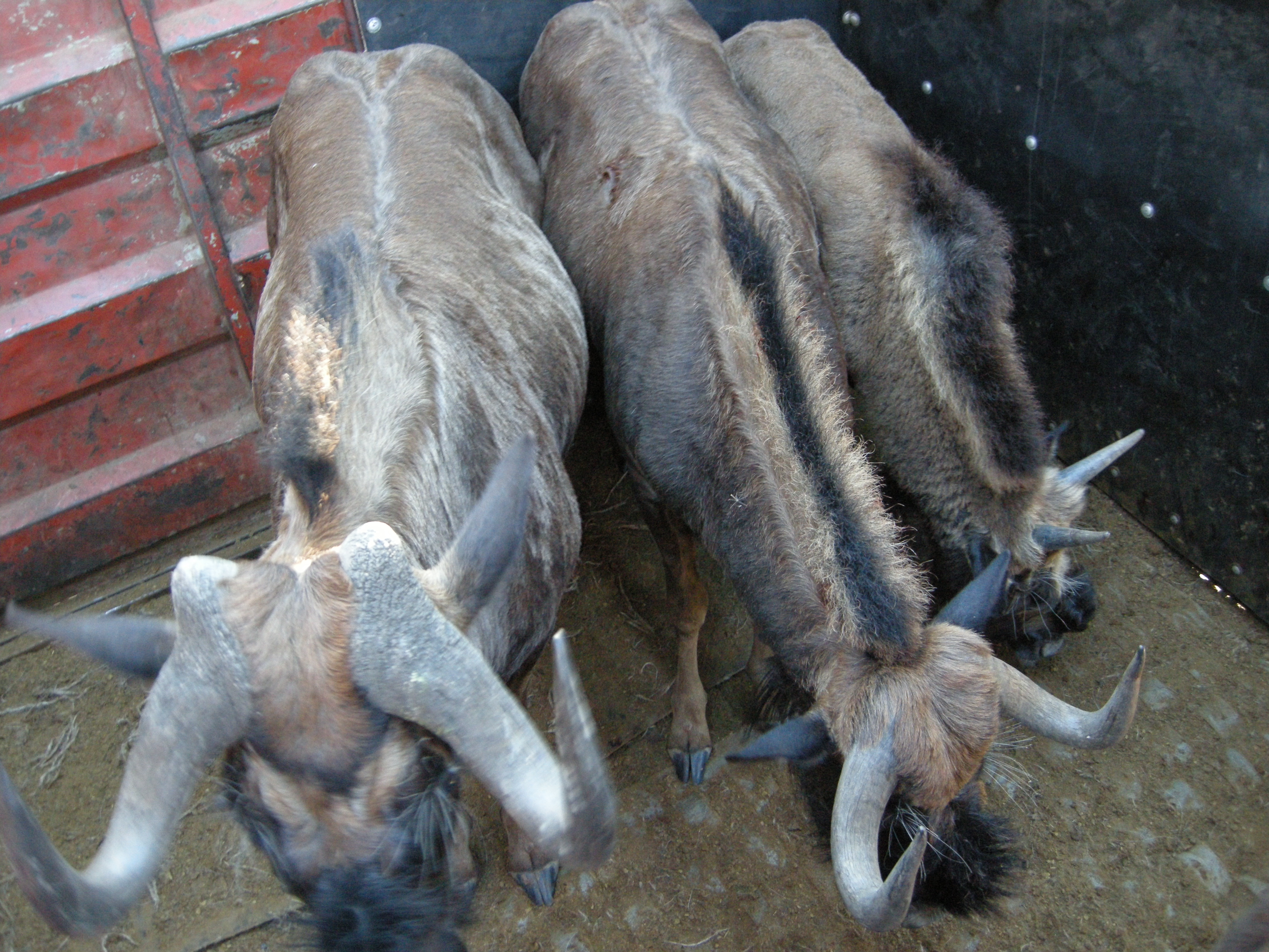 Two days later…they rounded up the wildebeests! They needed cattle prods and relaxant shots for them because they kept fighting with each other.