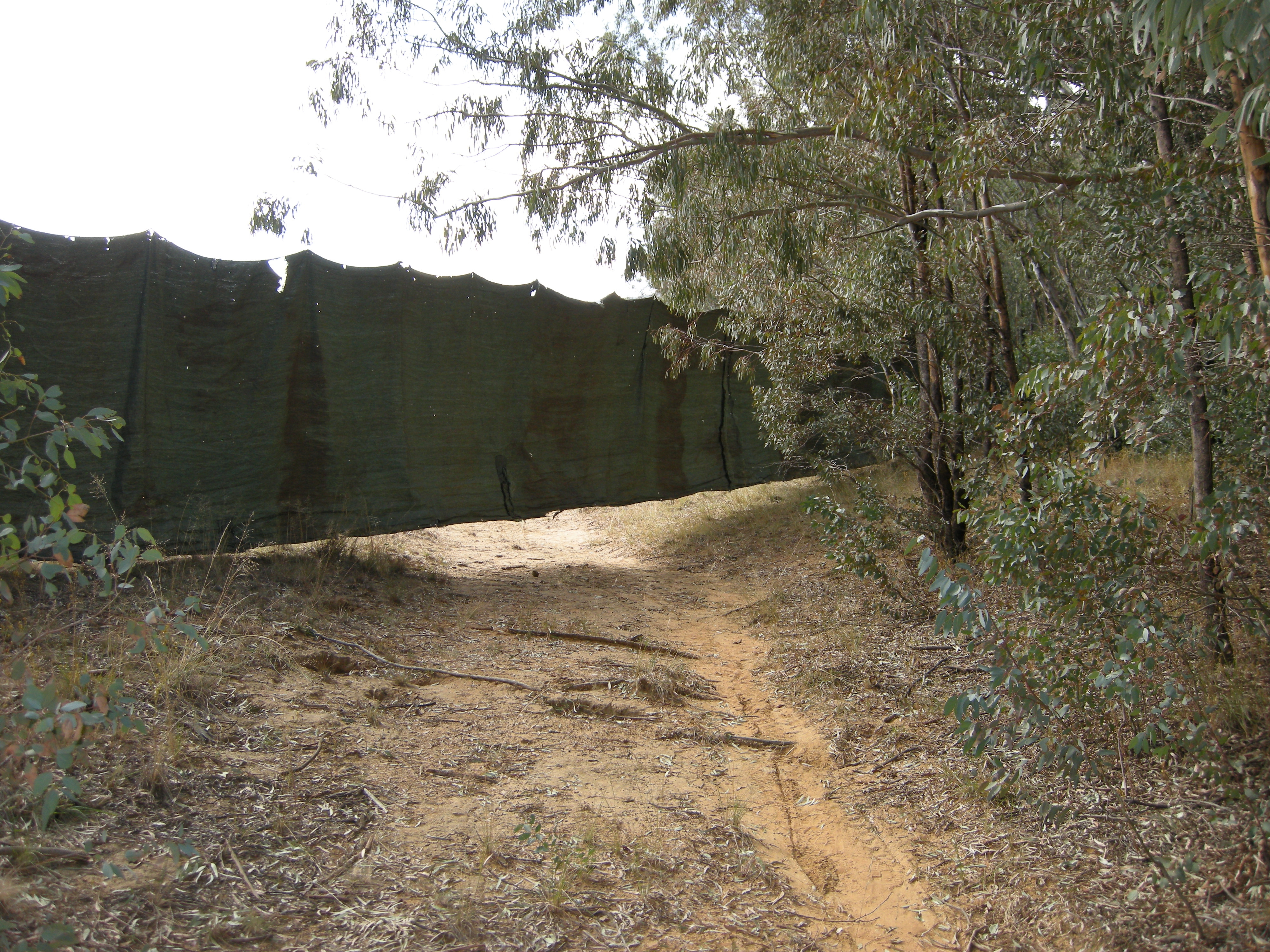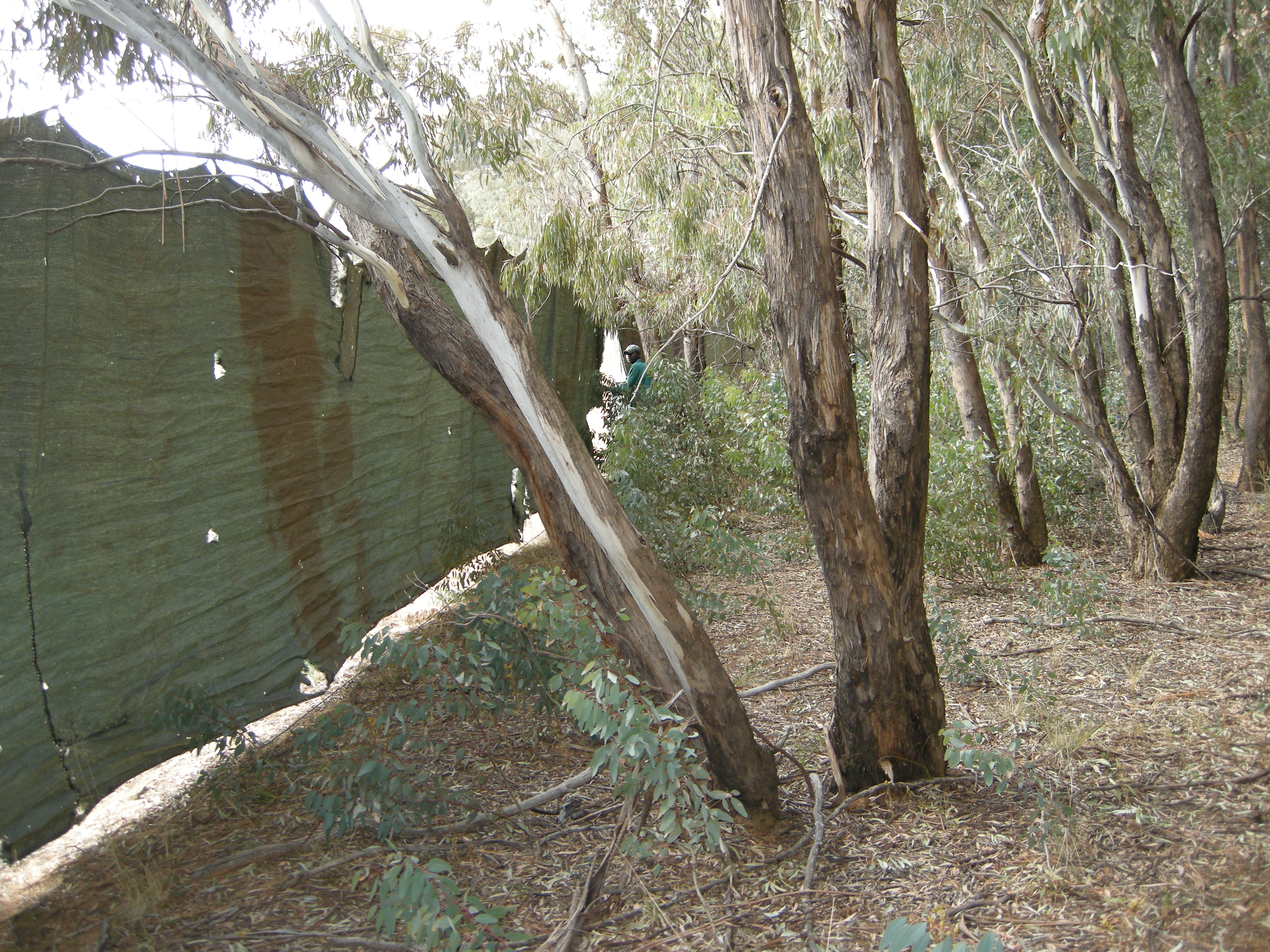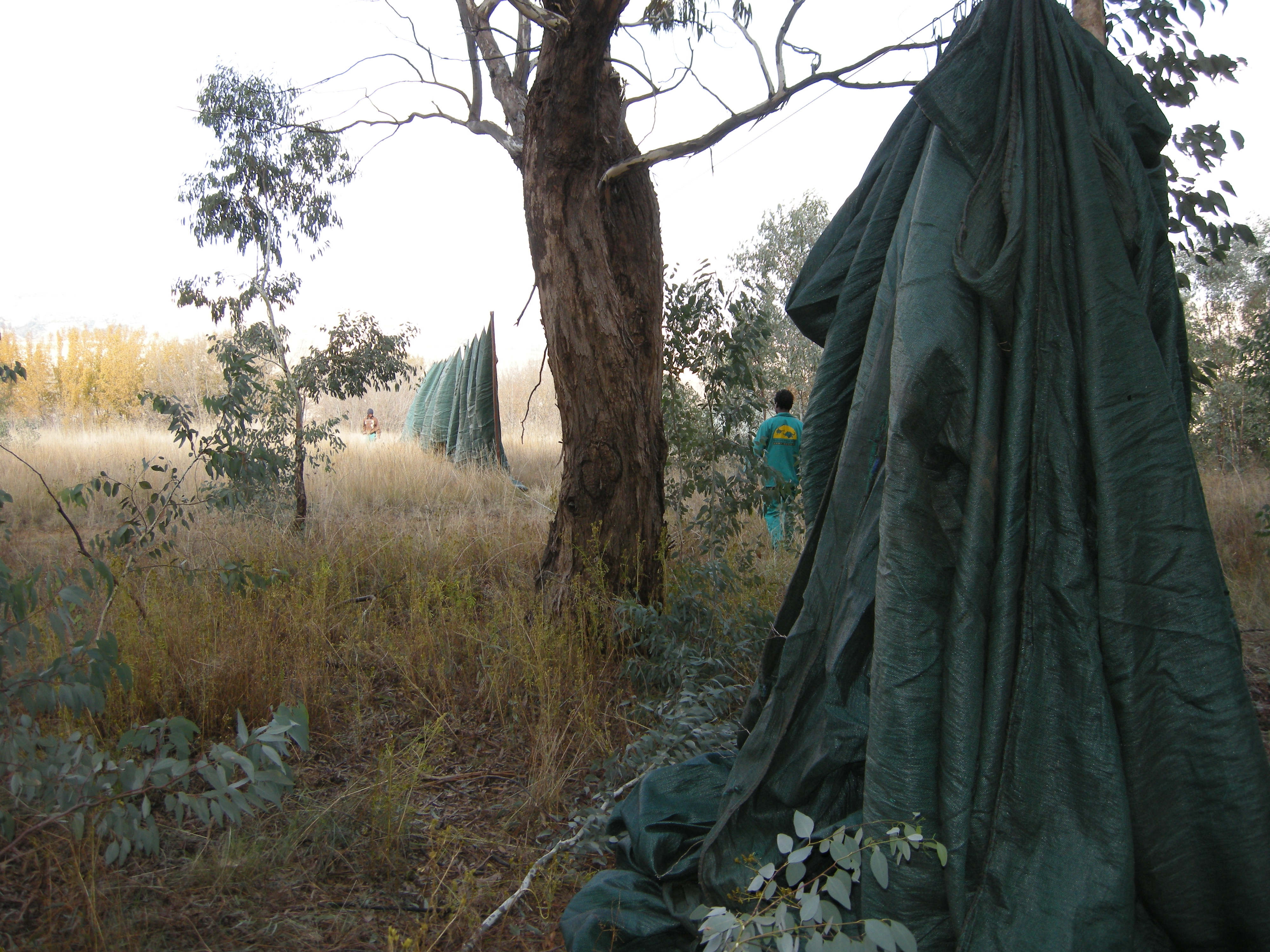 They string line after line from trees around the area – then hang these green tarps – creating walls and tunnels.