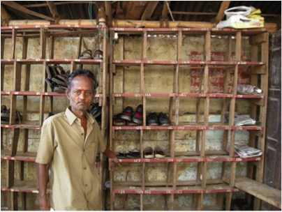 When you pick up your shoes, you give him 10 Rs (about 20 cents)