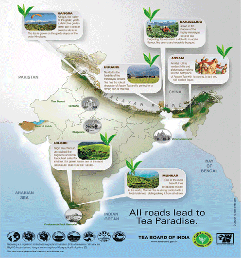 The geography of India allows for many different climatic conditions, and the resulting teas can be dramatically different from each other. There are 3 main kinds of tea produced in India: