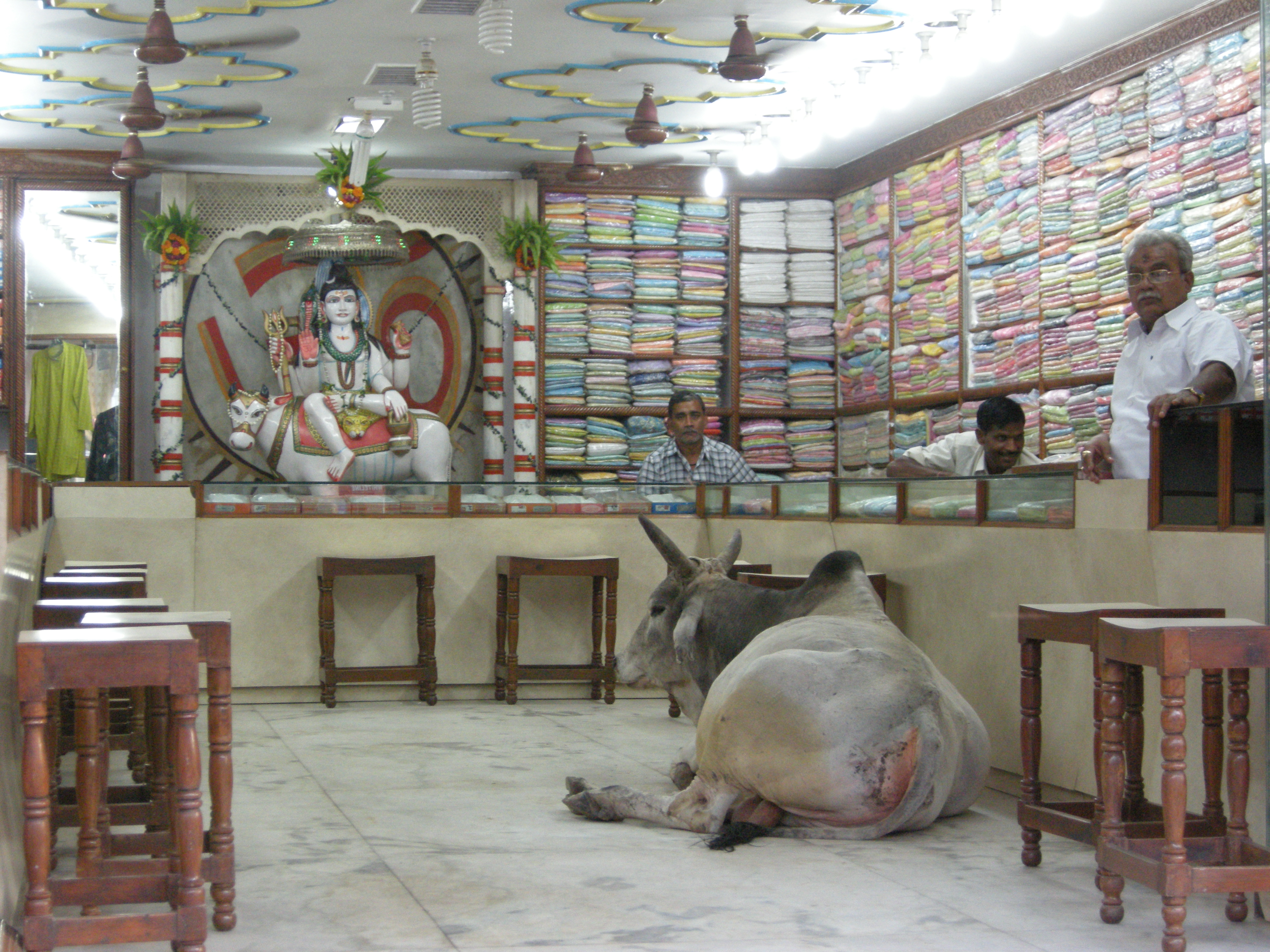 Remember…the cows are sacred…it’s probably good luck to have her in your shop!