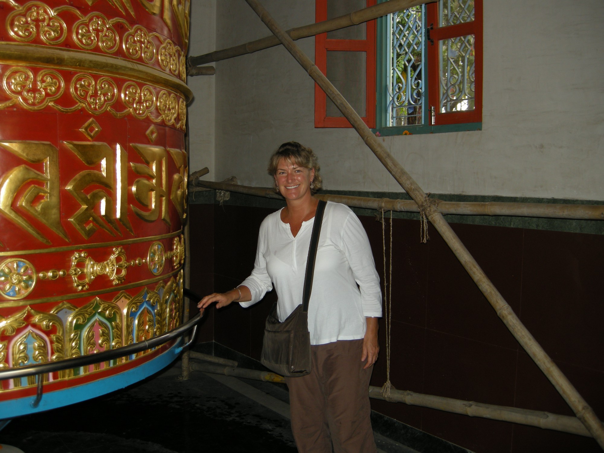 Leaving the temple, I walked down the east side of hill and at the bottom was a huge Tibetan prayer wheel – almost 12 ft high. It takes two people to turn it and a bell sounds each time it goes around a full rotation.